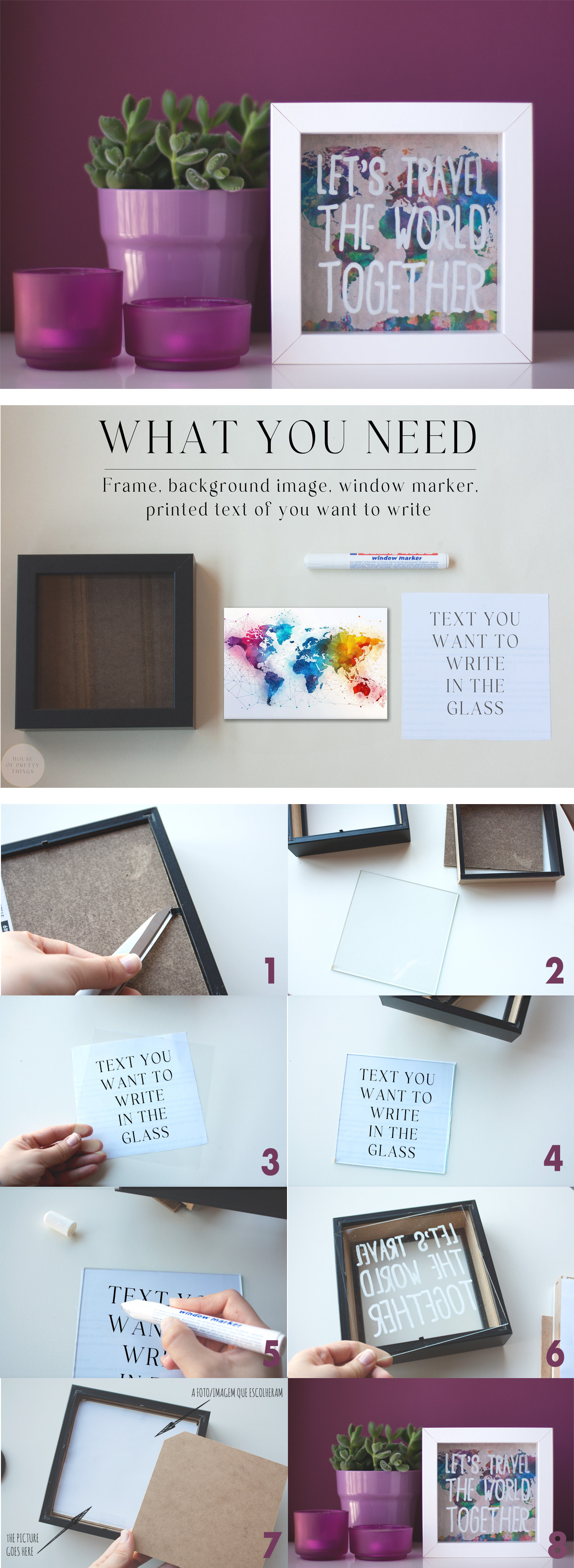 This DIY floating glass frame is an easy yet sophisticated project that adds a personal and artistic element to your space. Whether you choose an inspiring quote, a meaningful message or a favourite phrase, this handmade décor piece is sure to stand out. Try different background images and marker colours to match your style. Get creative and enjoy!